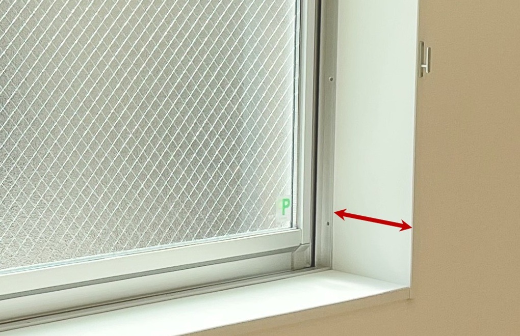 とくに今の窓枠の奥行(以下の写真参照)が5~7cm未満と狭い場合には注意が必要です。内窓を設置するために、専用の材料(ふかし枠)を使って窓枠を室内側へせり出させる必要があり、圧迫感が強くなることがあります。