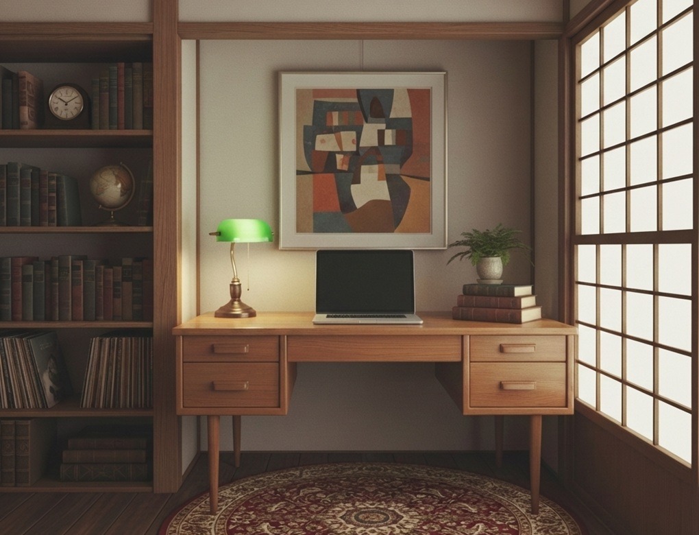 無理に洋室化しなくても、レトロな机であれば和室にもマッチします。床をフローリングに変えるとベストですが、机の下にラグを引いてもいいでしょう。