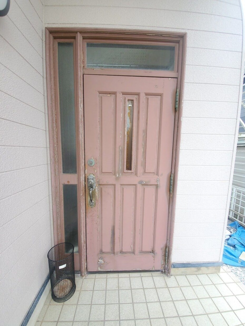 レトロな雰囲気の木製ドアを、リフォームでスタイリッシュな現代風のドアに一新した事例です。