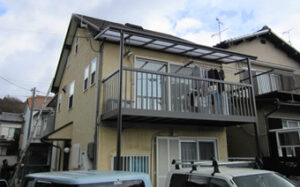 戸建て住宅の木製バルコニーを撤去し、アルミ製バルコニーへ交換した事例です。