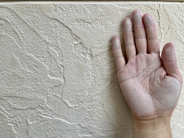 チョーキングとは、外壁を指で触った時にチョークの粉のような白いものが手につく状態のことです。これは、塗料の成分が分解され、粉になって表面に出てくる現象です。