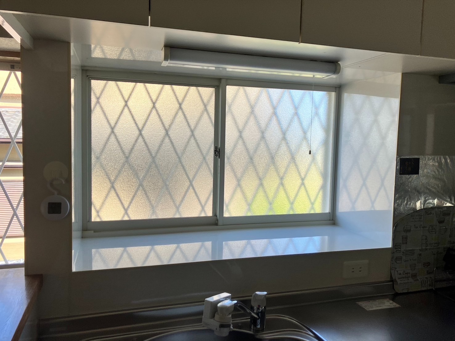 築30年以上の住宅で、キッチン前の壁はタイル貼りでした。タイルは水や熱に強い一方で、目地に油汚れがたまりやすく、掃除の手間がかかるというデメリットがありました。毎日使う場所だからこそ、「もっと簡単に掃除できたら…」というのが施主様のご希望でした。