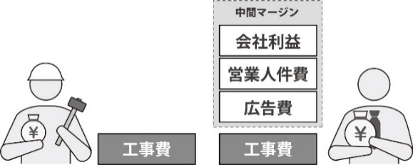 営業会社では、工事費とは別に「中間マージン」という費用がかかることがあります。