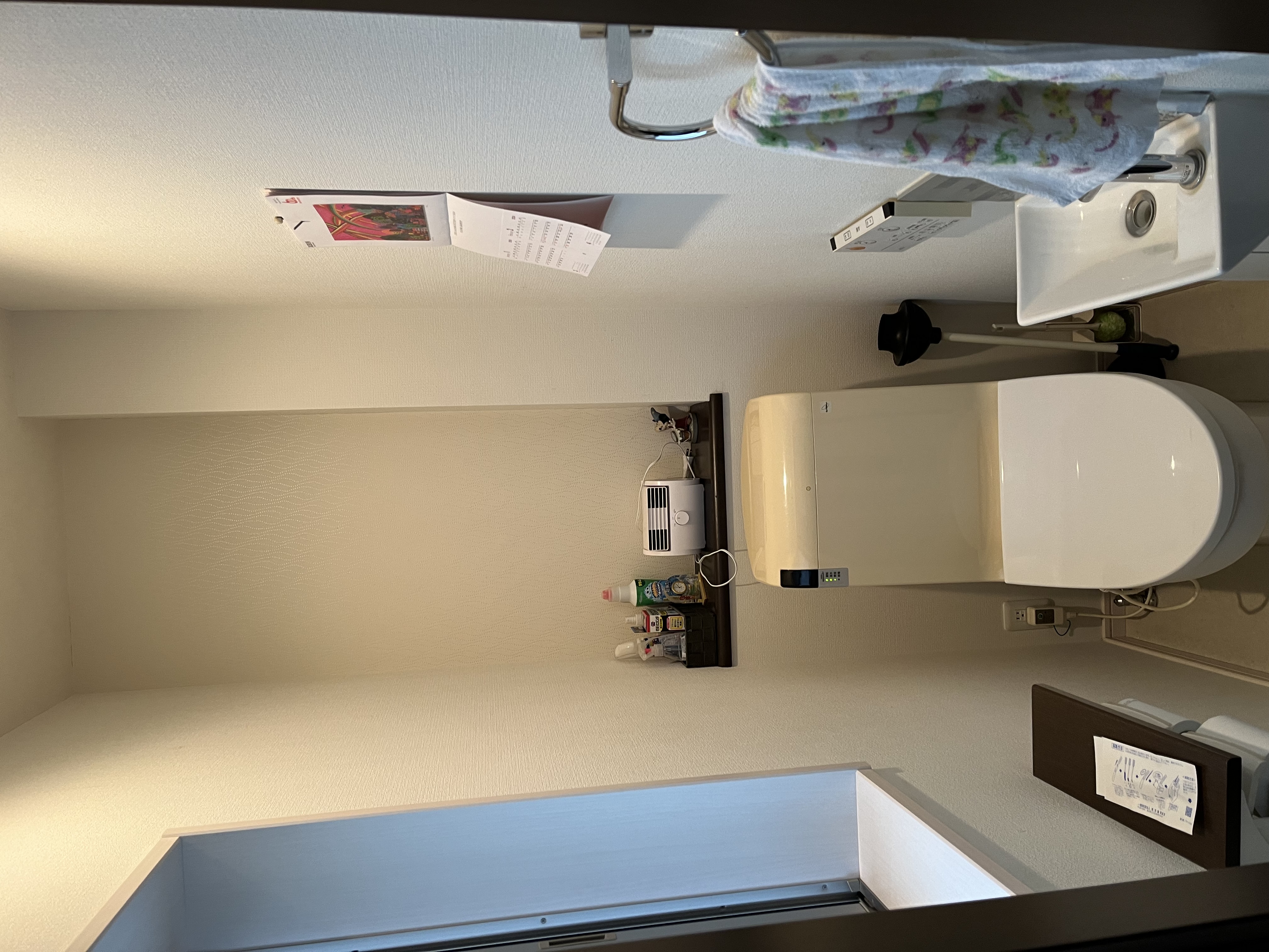 2025.11.26【大阪府大東市】水回りリフォーム|狭いトイレが激変!ブルーグレーのクロスがおしゃれな収納空間