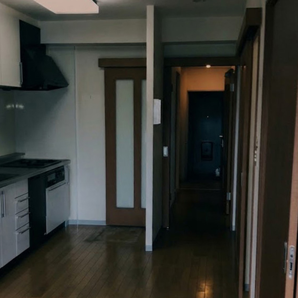 濃い色の建具で重たい印象